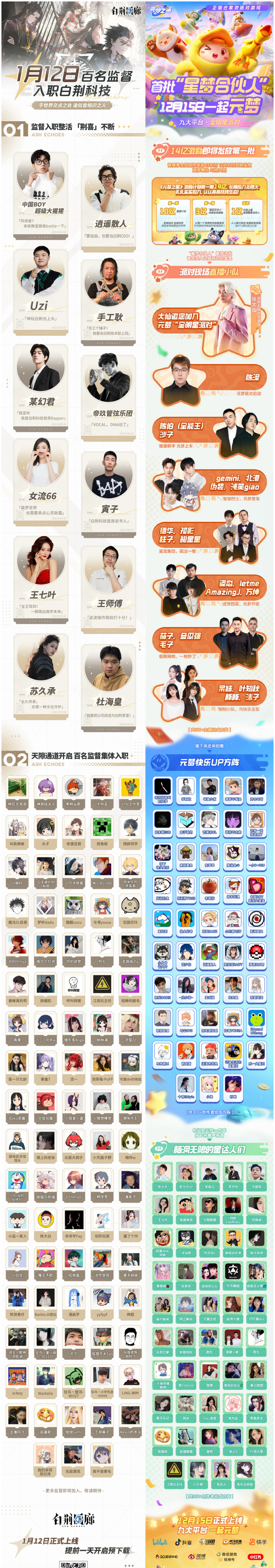 区别在于,跟《蛋仔派对》打派对战放一个百人KOL长图我能理解,输人不输阵嘛,即便里面有很多科技、娱乐等不相干的资源,但休闲派对游戏本来用户就泛化,有可能28岁的打工人没玩过派对游戏被吸引到留存。